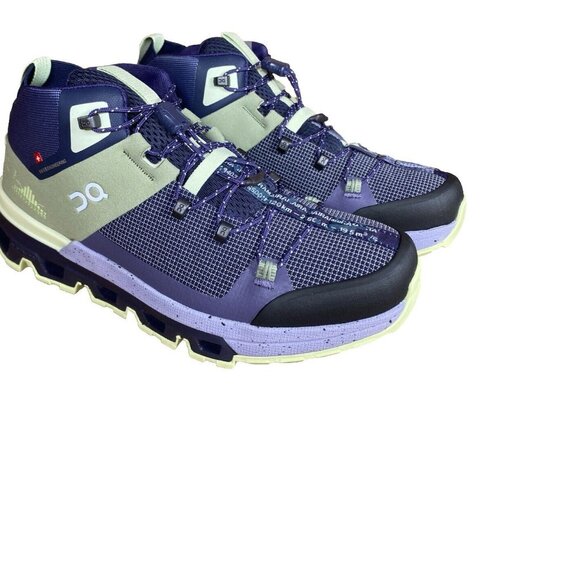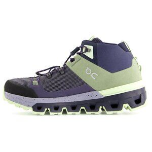 Elevate your hiking experience with these On Cloudtrax Women's Hiking Boots. These boots are designed to take you on a comfortable and sturdy journey, whether you're a nature enthusiast or an athlete. The purple and green geometric pattern adds a touch of style to the boots, making them perfect for casual wear or workwear.