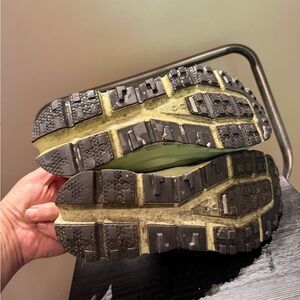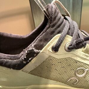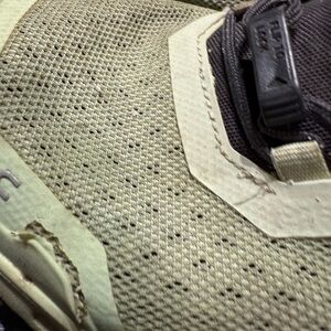 Stylish On Cloudultra shoes in green and black. Ideal for active lifestyles. See pics for tears on sides of each shoe and for a rip in one toe area. Plenty of tread and life left though.