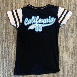 On Fire Baseball Jersey California LA Graphic Tee Striped Sleeve Kids Size L