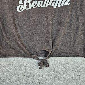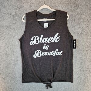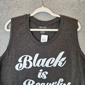 On Fire Black Is Beautiful Charcoal & White Graphic Tie Front T-Shirt Sz 3X.