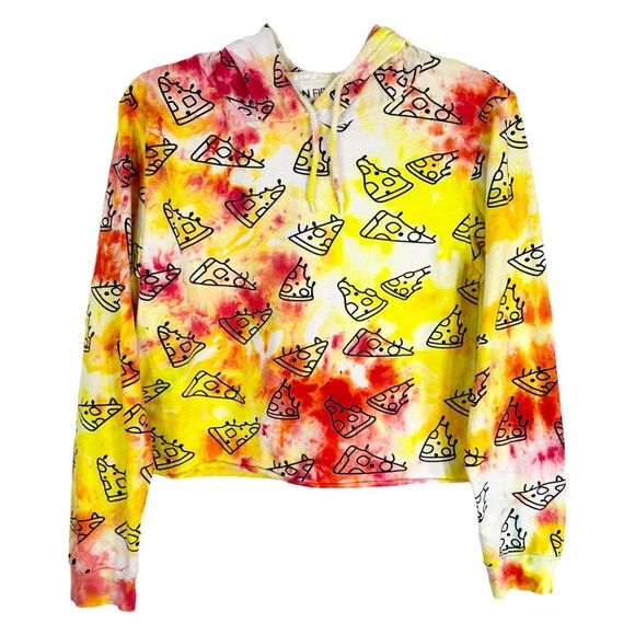 On Fire Large Hoodie Pizza Pizzazz Tie Dye All Over Print Yellow Red 1015