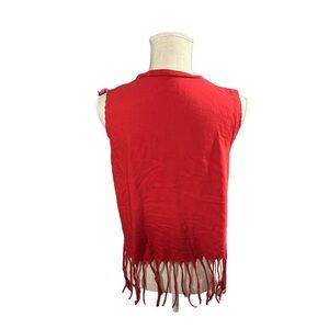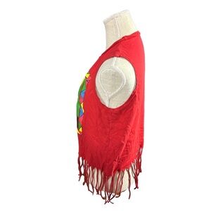This unique On Fire tank top is perfect for those who want to stand out in a crowd. The colorful rainbow graphic print and frilly fringe accents make it a perfect choice for a casual day out. The sleeveless design and crew neck provide comfort and style, while the pullover closure adds convenience.