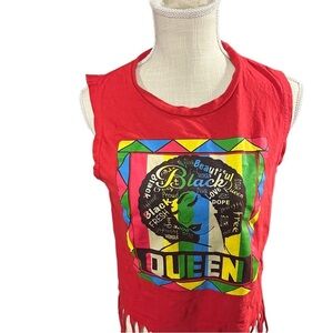 On Fire Women Red Rainbow Graphic Black Queen Frilly Sleeveless Tank Top Sz XL
