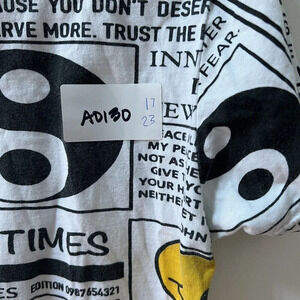 On Fire Womens Allover Graphic White T-Shirt “God is all you need” Large Smiley