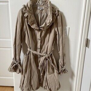 On Parle De Vous Ruffled Neck Belted Trench-coat in Beige XL