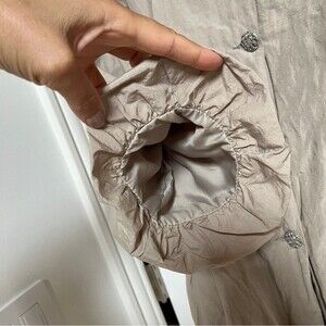 The unique fiber combination of this trechcoat (it contains metal) makes this a very unique (hard to explain) texture but it also makes it a water resistant option as a rain jacket.