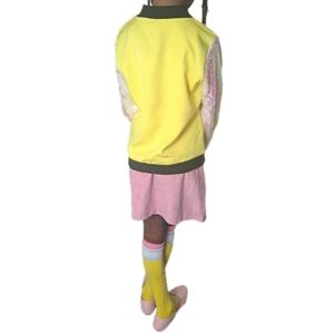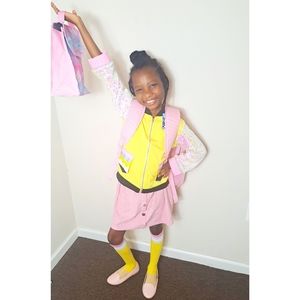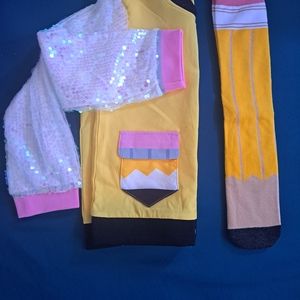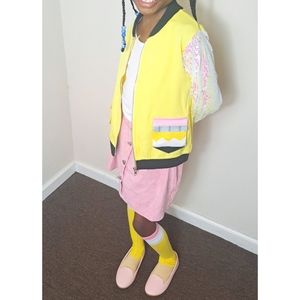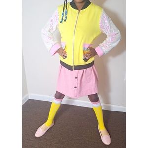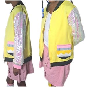 Pencil jacket with sequin sleeves.