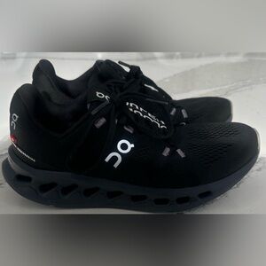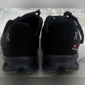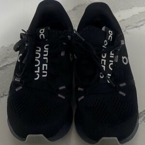 Sleek black athletic shoes. Lightweight and breathable. Perfect for running.
