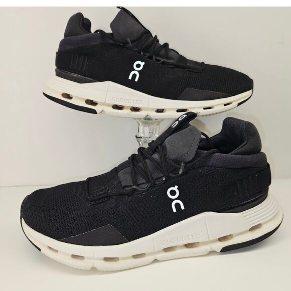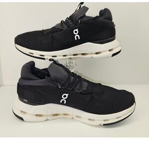 Stylish On Running sneakers. Black upper with white sole. Comfortable and modern design.