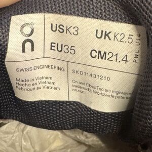 On Running Cloud Play Shoes Kids Size K3 Pink Zephyr White Athletic Sneakers