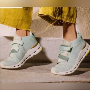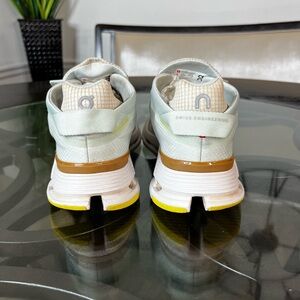 Sleek On Running sneakers with innovative Cloudtec technology. Mint and white design with yellow accents. Excellent conditions, some normal wear, no og box