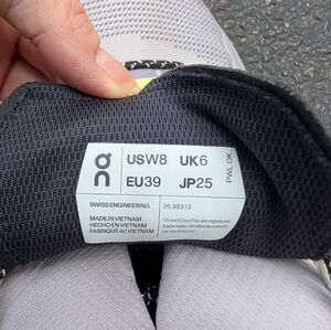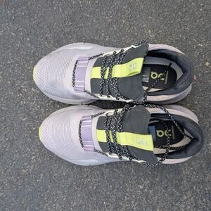 Sleek athletic shoes by On Running. Gray base with lime accents. Perfect for running and workouts.cloudnova size 8