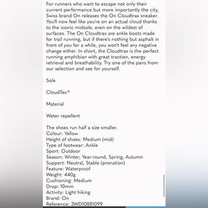 On Running Cloudtrax Waterproof Sneakers Size 7 NIB