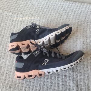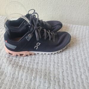 On Running Gray and Pink Athletic Shoes with CloudTec Cushioning Women's Size 8.Preowned. Minor wear. Please see pictures. Step into comfort and performance with On Running's athletic shoes, featuring a sleek gray upper with pink accents. Designed for both running and everyday wear, these shoes boast a breathable mesh fabric and the innovative CloudTec® cushioning system for a smooth ride.