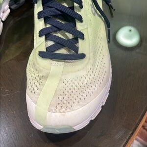 Step into performance with the On Running athletic shoes, featuring a striking green and blue colorway. Designed for optimal support and cushioning, these shoes are perfect for any athletic endeavor. The breathable mesh upper ensures comfort, while the modern silhouette adds a touch of style to your workout gear.