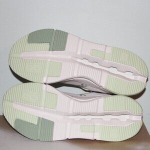 Sleek On Running shoes. White upper with light green accents. Perfect for athletic activities.