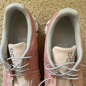 On Running Pink and White Sneakers with Cloud-Like Soles