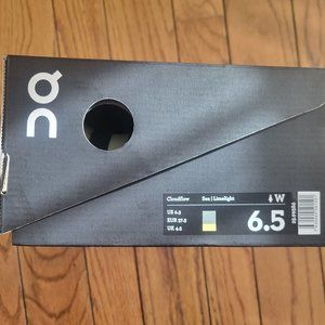 New in the box On Running Cloudflow sneakers in Sea/Limelight color in size 6.5 (European 37.5). This color is great--and very hard to find. I bought them on Ebay and was unable to return them (they are a snug for me--I am a size 7 and thought I could get away with a 6.5).