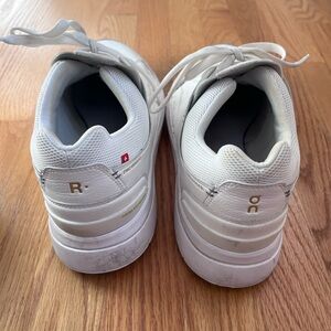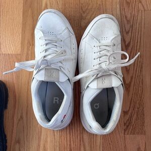 On Rodger Sneakers. Worn a few times don’t fit my husbands foot well.