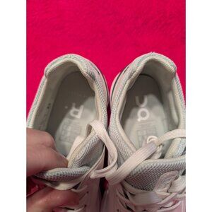 A stylish and comfortable pair of On Running sneakers with only minor cosmetic wear — perfect for everyday wear or casual athletic looks