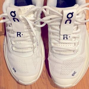 Sleek and stylish athletic shoes. Comfortable fit. Never worn by me, reposhing because they fit too tight, or if someone is willing to trade with a half size up (7.5)!