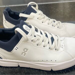 Stylish women's sneakers by On Running. Features a sleek white design with black accents. Perfect for everyday wear.