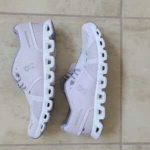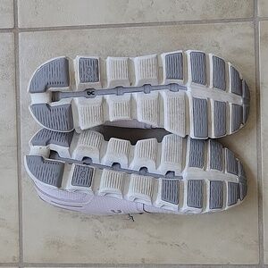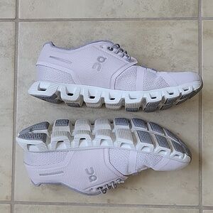 Light lilac-gray athletic shoes by On Running. Breathable mesh upper. Comfortable and stylish design.