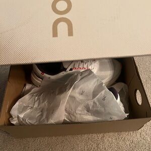 These beautiful On shoes were worn once. Unfortunately, they were a bit tight for me, so they haven’t been worn again. Ready to find a new home.