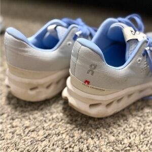 Sleek and breathable design. Light blue accents with white base. Ideal for running and casual wear. Used them 3 times