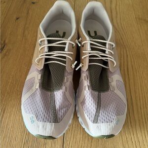 Stylish On Running shoes in mauve and white. Ideal for active lifestyles.
