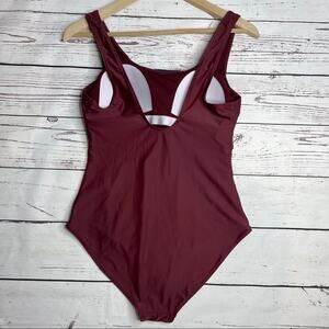On The Beach burgundy full-piece bathing suit. Built-in cup liners. Like New! Size 12