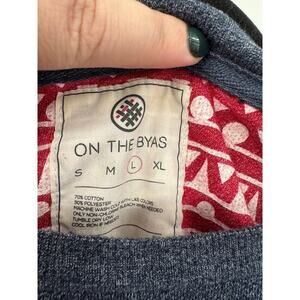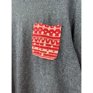 On The Byas Blue Long Sleeve Shirt with Red Aztec Pocket Size Large Casual