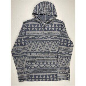 On The Byas Hoodie Henley Shirt Men’s XL Aztec Cotton Blend Pockets Blue Gray