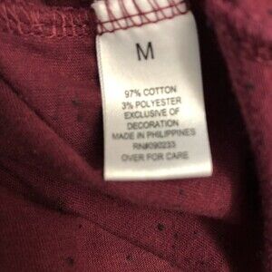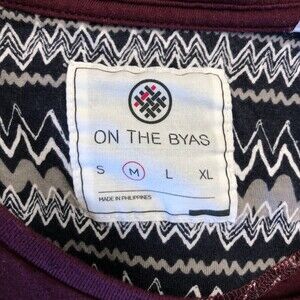 On The Byas Men's Medium Maroon Burgundy Knit Top T-Shirt Medium Casual Style. Top is pre-owned. Please see all photos for visible condition. Has speckles throughout the knit - see close up photo. Has an abstract design front chest pocket. Approximately 26 inches long x 20-20.5 inches pit to pit. 97% cotton 3% polyester. RN # 090233. From a pet friendly home.
