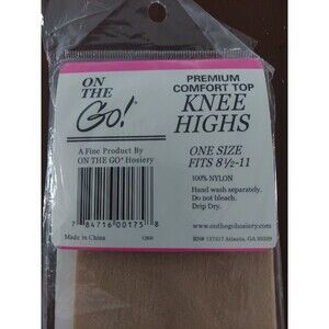 Elevate your everyday look with these On The Go knee-highs. Made of premium nylon material, these stockings provide top comfort while featuring a sheer toe design and a double band for added support. Perfect for any occasion, these solid beige stockings are hand wash only and come in a size 8 1/2-11.
