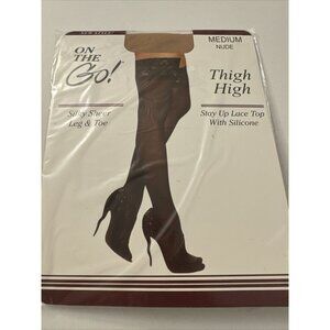 On The Go Lace Top Thigh High Silky Sheer Leg Toe Medium Size Nude Stocking B24