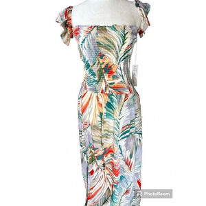 This dress is available in size L and comes with tags. It's perfect for any occasion, whether you're going to a beach or attending a garden party. The multicolor design is flattering and versatile, suitable for any season. Don't miss out on this amazing piece!