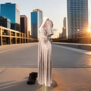 On The Road Dress Womens XS Pink Velvet V Neck Short Sleeve Maxi Empire Waist