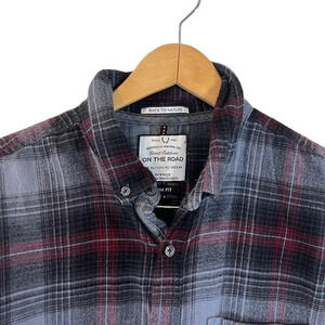 On The Road Mens Flannel Button Up XL Slim Fit Back to Nature Gray Red Collared