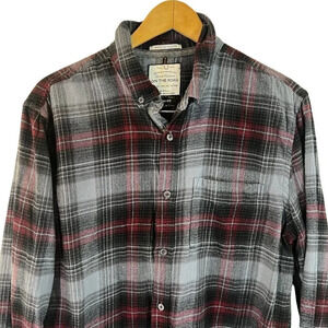 On The Road Mens Flannel Button Up XL Slim Fit Back to Nature Gray Red Collared 100% Cotton Front Pocket