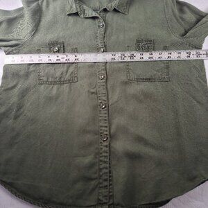 On The Road shirt 100% tencel roll sleeve military women's size LG olive green