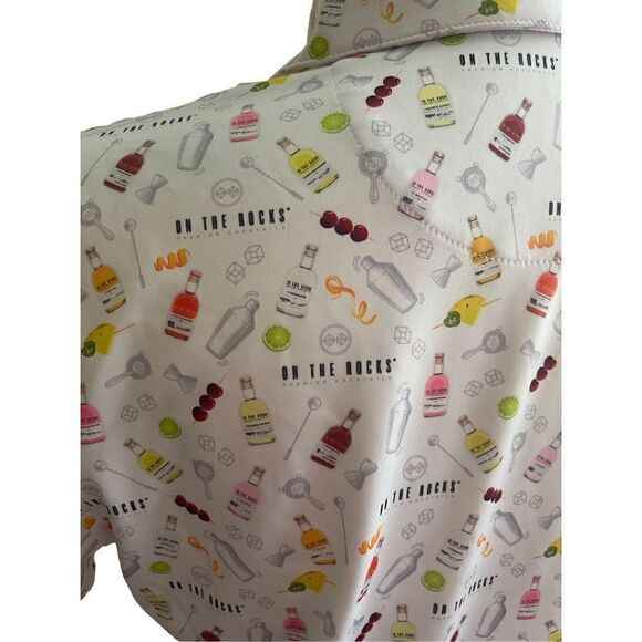 On The Rocks Women’s White Premium Cocktails Print Polo Shirt Size Small
