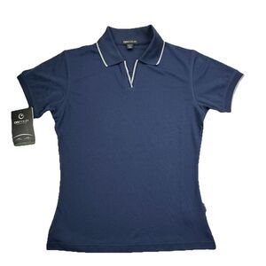 On Tour Blue WEBtech Golf Polo Womens XS Navy Silver Trim Moisture Management