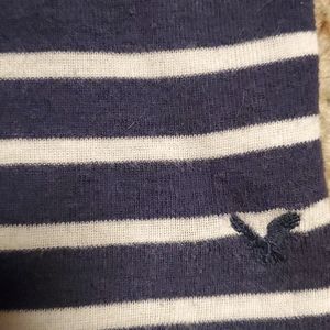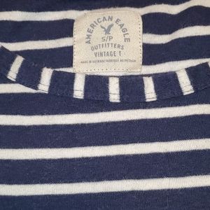 American Eagle navy blue and white striped top with 3/4 length sleeves in great used condition!