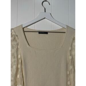 On Twelfth · Large · Ribbed Polka Dot Top · Sheer Sleeves · Square Neck · Cream
