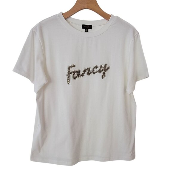 On Twelfth Shirt FANCY Spellout Women's Size L White Top NWOT