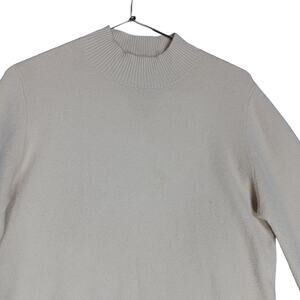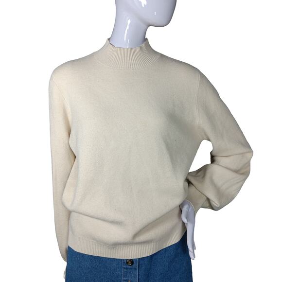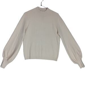 On Twelfth Sweater Top Size Large Beige Knit High Neckline Balloon Sleeves