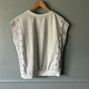 On Twelfth, sleeveless, appliqué, lace detail, grey, tank, size large