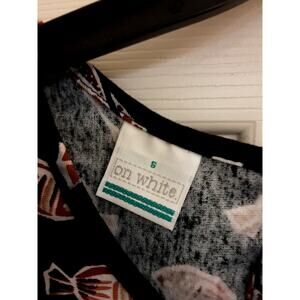 On White Dress, Women's Size Small Long Maxi Fish Design, Short Sleeve, EUC