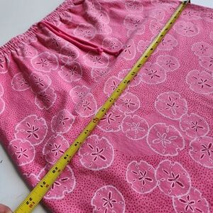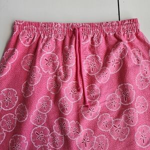On White Woman's Drawstring Elastic Waist Pink Sandollar Print Cotton Skirt Sz L